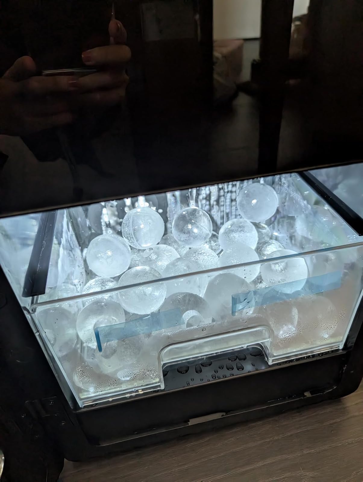 The built-in ice basket can store up to 56 ice balls at once. It’s great for serving large groups or keeping a steady supply of fresh ice ready for daily use.