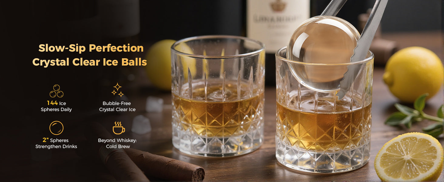 Each batch takes about 35 minutes to produce 4 perfectly round, crystal-clear ice balls. The machine can make up to 144 ice balls per day, so you’ll never run out — even during parties or gatherings.